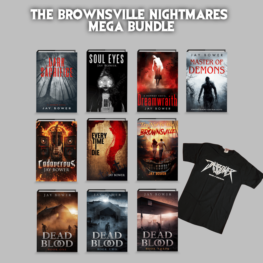 For the one who wants everything to do with Brownsville, every book in this bundle takes place in the same terrifying town. Plus, you'll get a comfy 100% cotton Jay Bower t-shirt to show off your fandom.